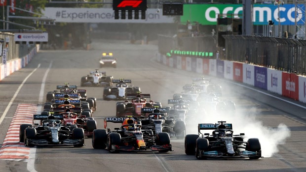 He continued, “He made a fantastic start, he got himself up alongside Perez and as he and Perez were sort of shuffling position Lewis swerved and in the process of swerving he just clipped the magic button and unfortunately he didn’t feel he had done it. So, he had completely no awareness he was going to have a problem. The point he then braked, which was the normal point for him to brake, he was in the position where he got all of the brake balance shifted forward, which put all of the load through the front tyres and as a consequence they locked and from that point there was nothing that he could do than go wide.”